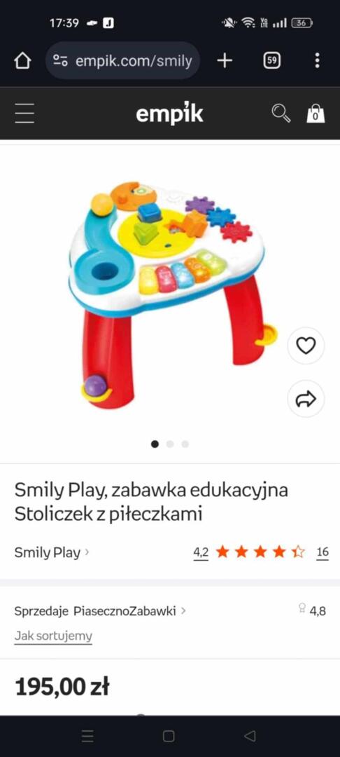 Sprzedam stoliczek edukacyjny za 30zl. Cena sklepowa 195zl.